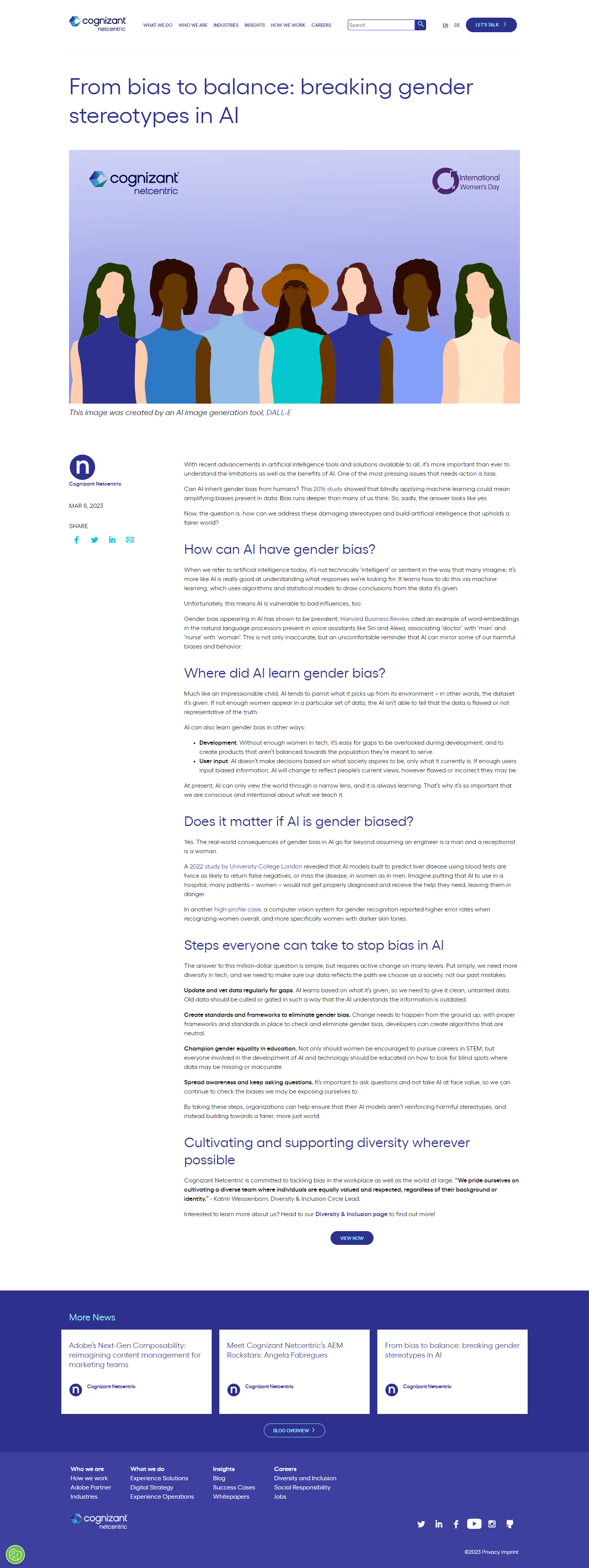 From bias to balance: breaking gender stereotypes in AI - Cognizant Netcentric Last updated on May 3, 2023 ArticleMarch 2023 Previous Data Maturity Models: Measure the Health of Your Data - Anmut Next The danger of using public internet: the most at-risk industries in 2023 - Anapaya