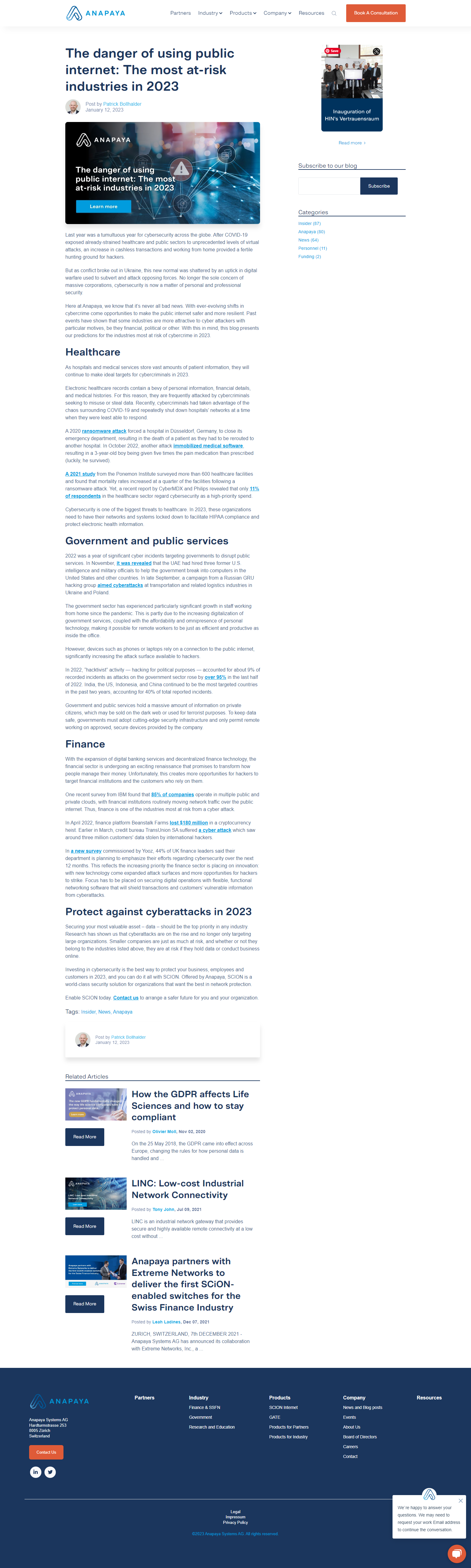 The danger of using public internet: the most at-risk industries in 2023 - Anapaya Last updated on May 3, 2023 ArticleJanuary 2023 Previous From bias to balance: breaking gender stereotypes in AI - Cognizant Netcentric Next Anapaya named as a Sample Vendor in Gartner® Hype Cycle™ for Enterprise Networking, 2022